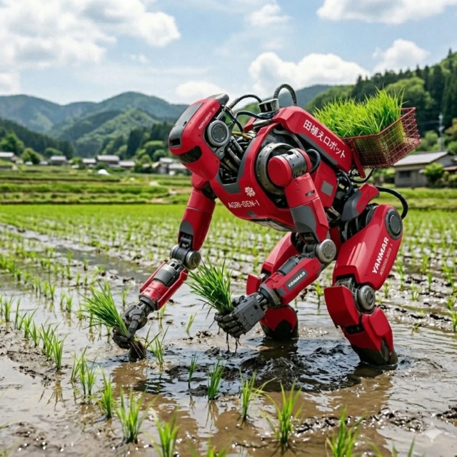 自動田植え機をロボットが運転している、またはその車両と一体化しているのが現実じゃないかと。